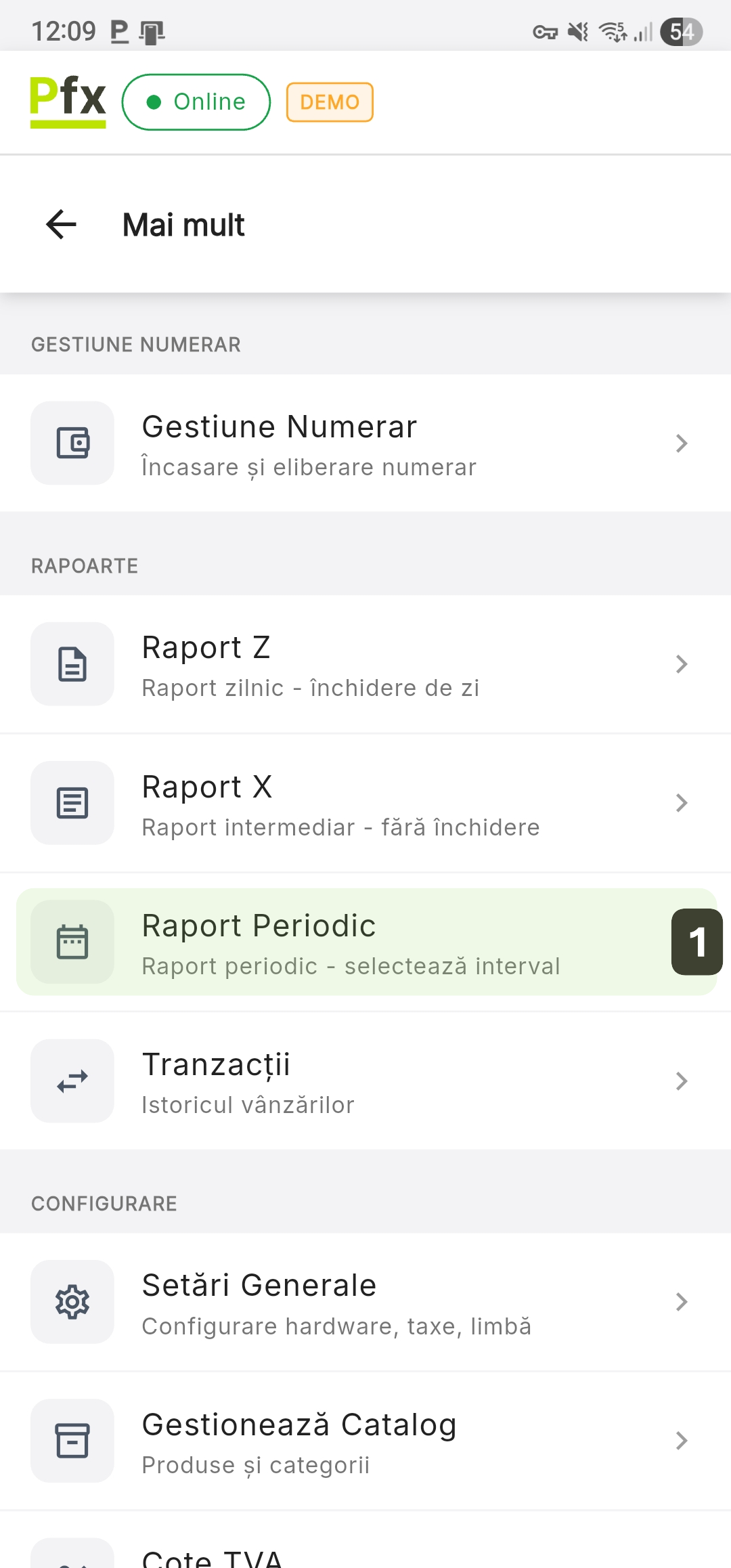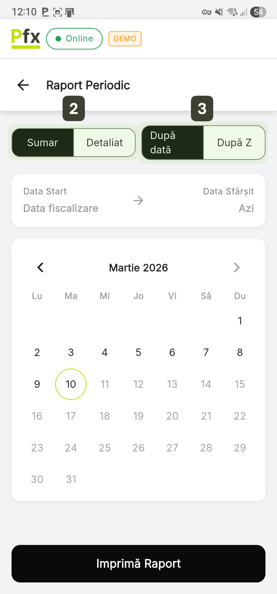 Raportul Periodic este un instrument avansat de audit care permite extragerea și imprimarea istoricului fiscal pentru un interval personalizat. Acesta este esențial pentru contabilitate și analiza performanței pe perioade lungi, cum ar fi săptămânal, lunar sau trimestrial.
