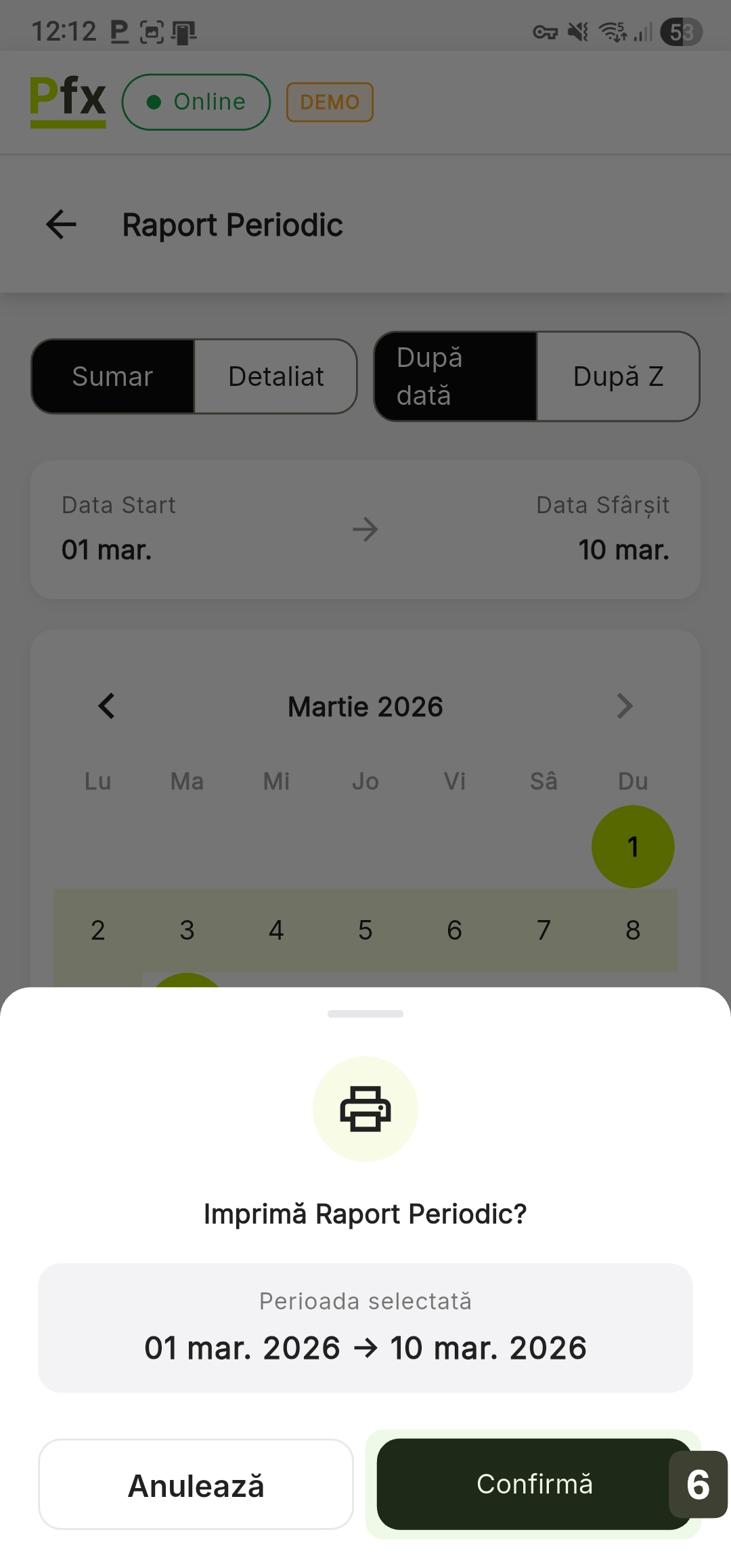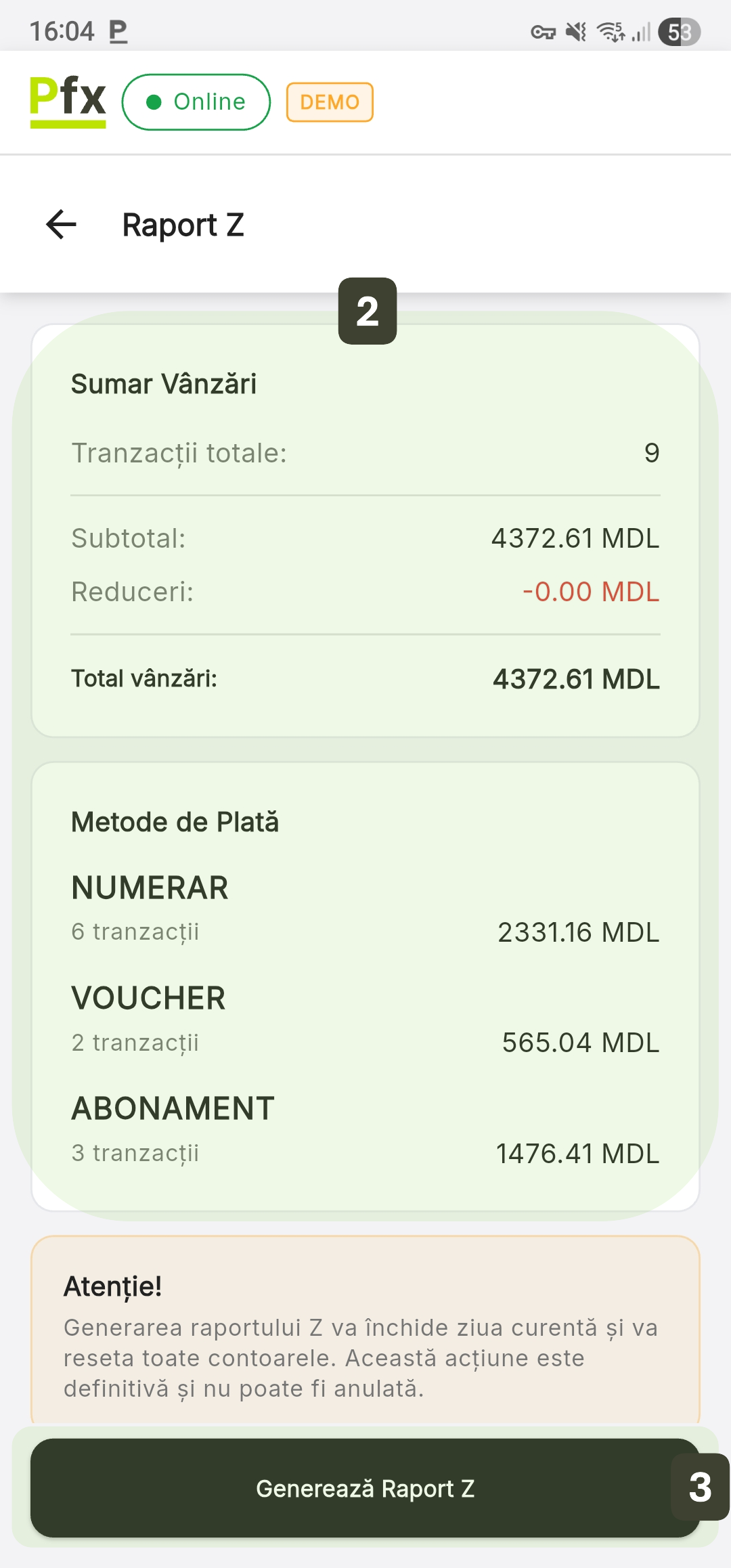 - Irevocabil: Odată confirmat, vânzările se resetează la zero. Nu mai puteți emite bonuri fiscale pe ziua respectivă.