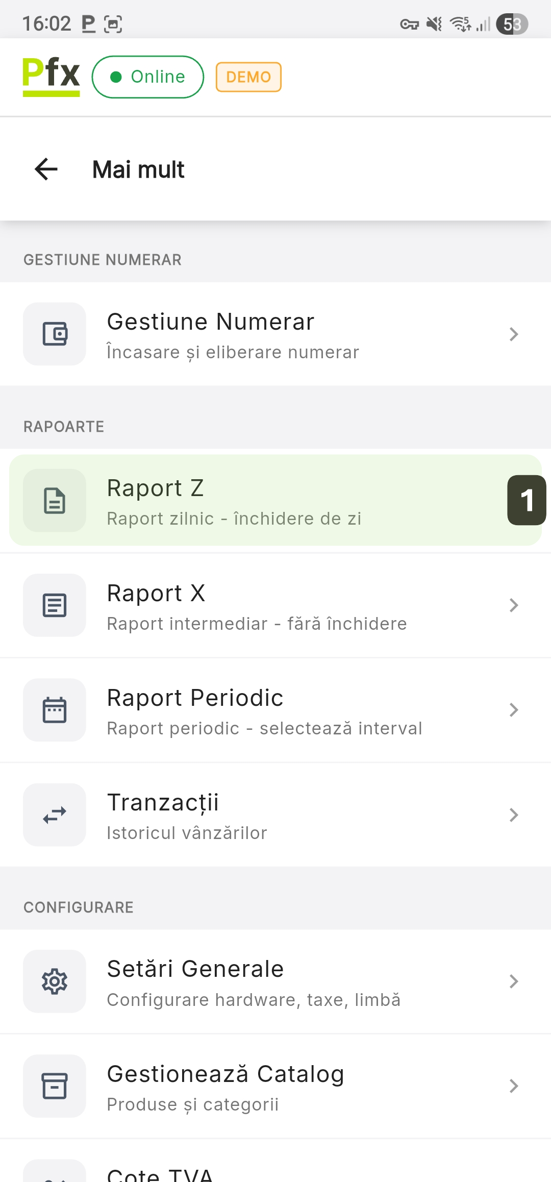 Raportul Z este comanda finală de închidere a zilei fiscale. Aceasta resetează contoarele și transmite datele către MEV.