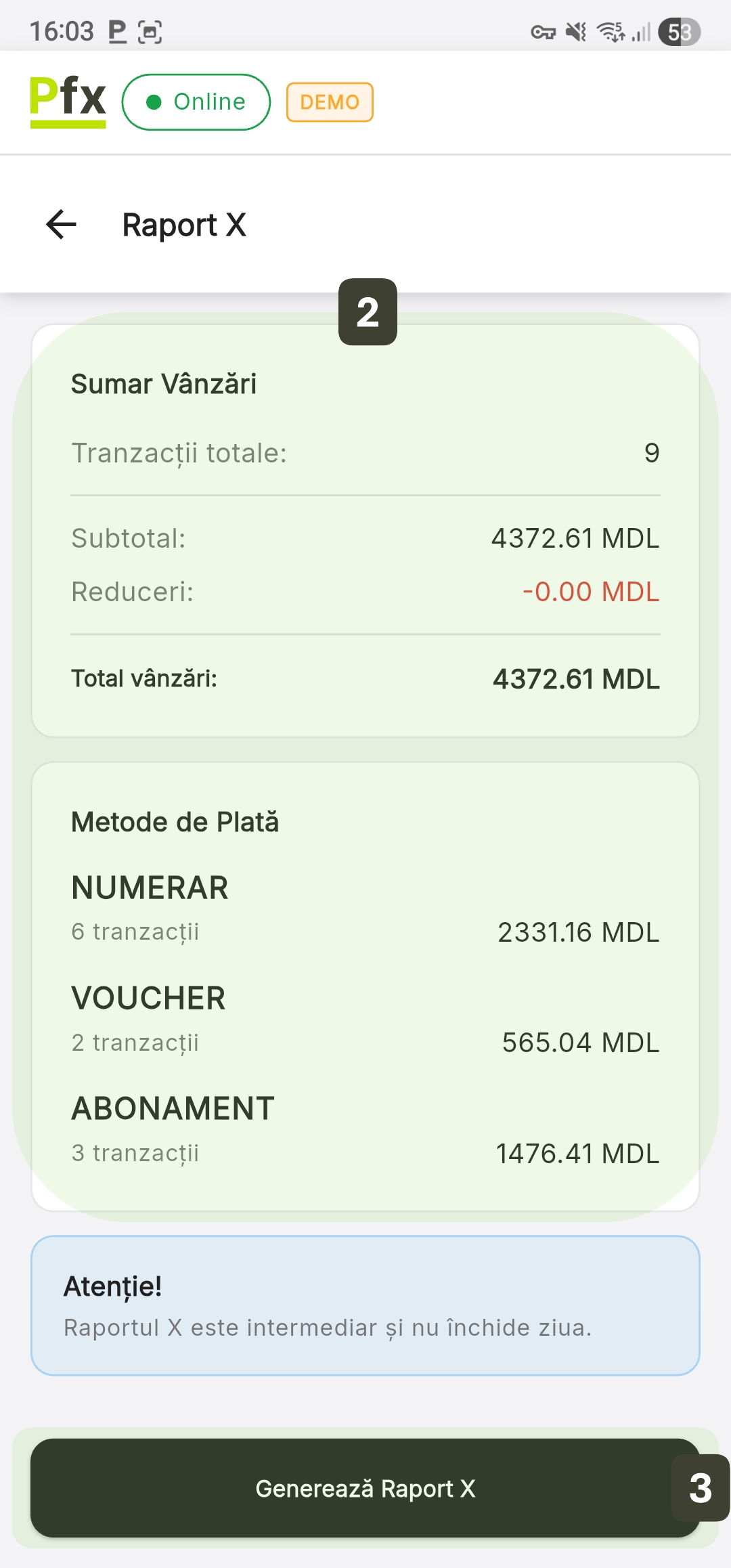 Raportul X este un raport informativ de verificare care poate fi generat oricând în timpul zilei, fără a închide ziua fiscală.