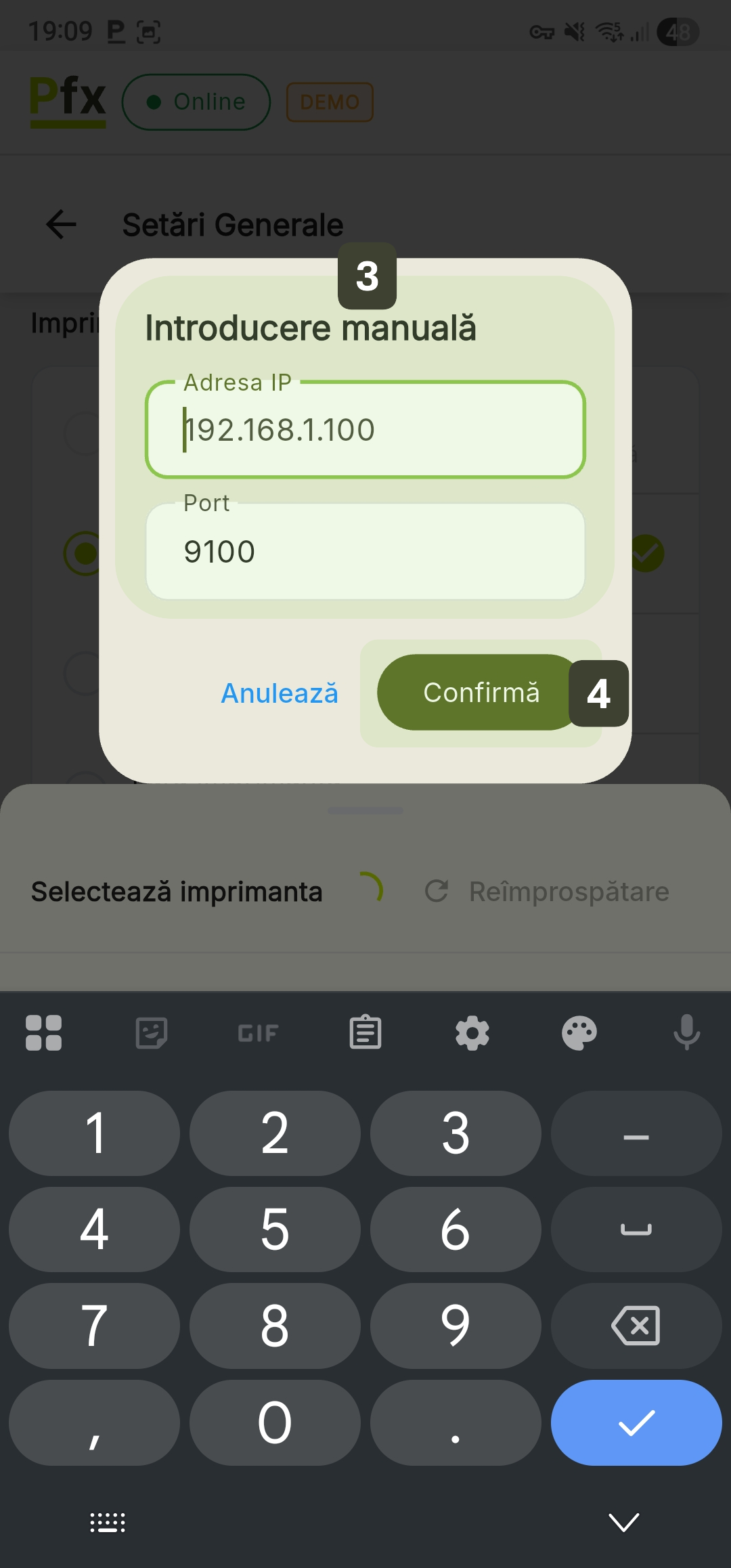 Pentru imprimante termice conectate prin Wi-Fi sau LAN: