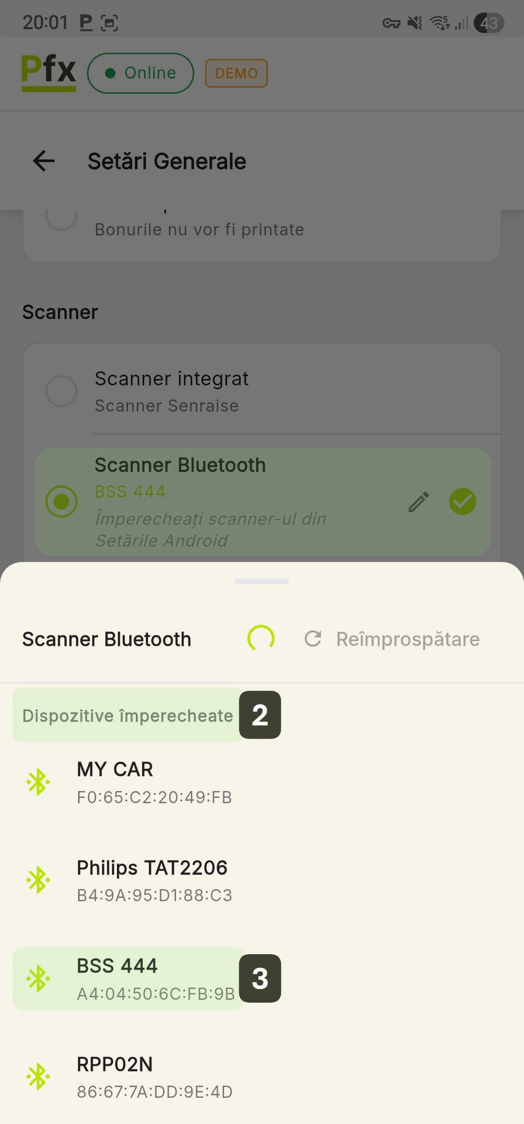 Odată selectat, acesta va apărea scris sub titlul „Scanner Bluetooth”.