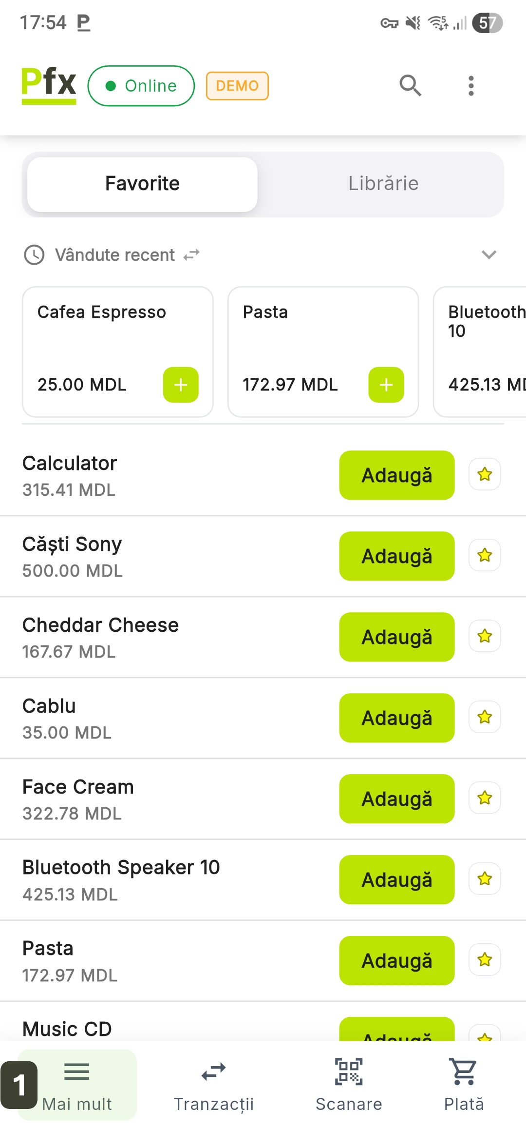 Disponibilă pe terminalele POS (PAX, Senraise, Sunmi, iMin):