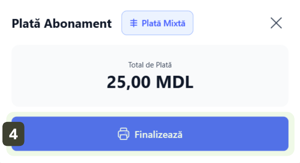 - Se va deschide fereastra de plată. Apăsați butonul Plată Mixtă