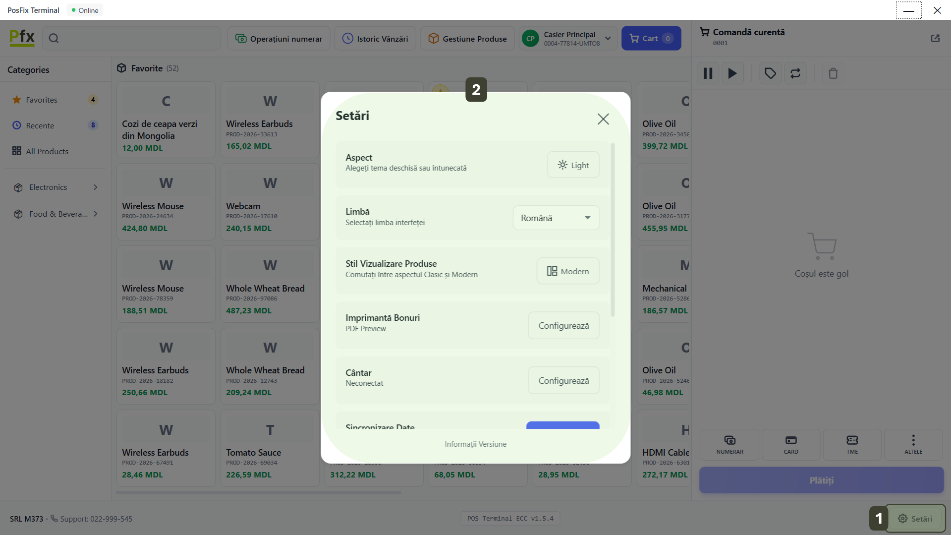 - Configurare Tehnică: Instrumente esențiale pentru conectarea echipamentelor periferice (imprimante de bonuri, cântare electronice), sincronizarea datelor cu serverul central și gestionarea modului de lucru.