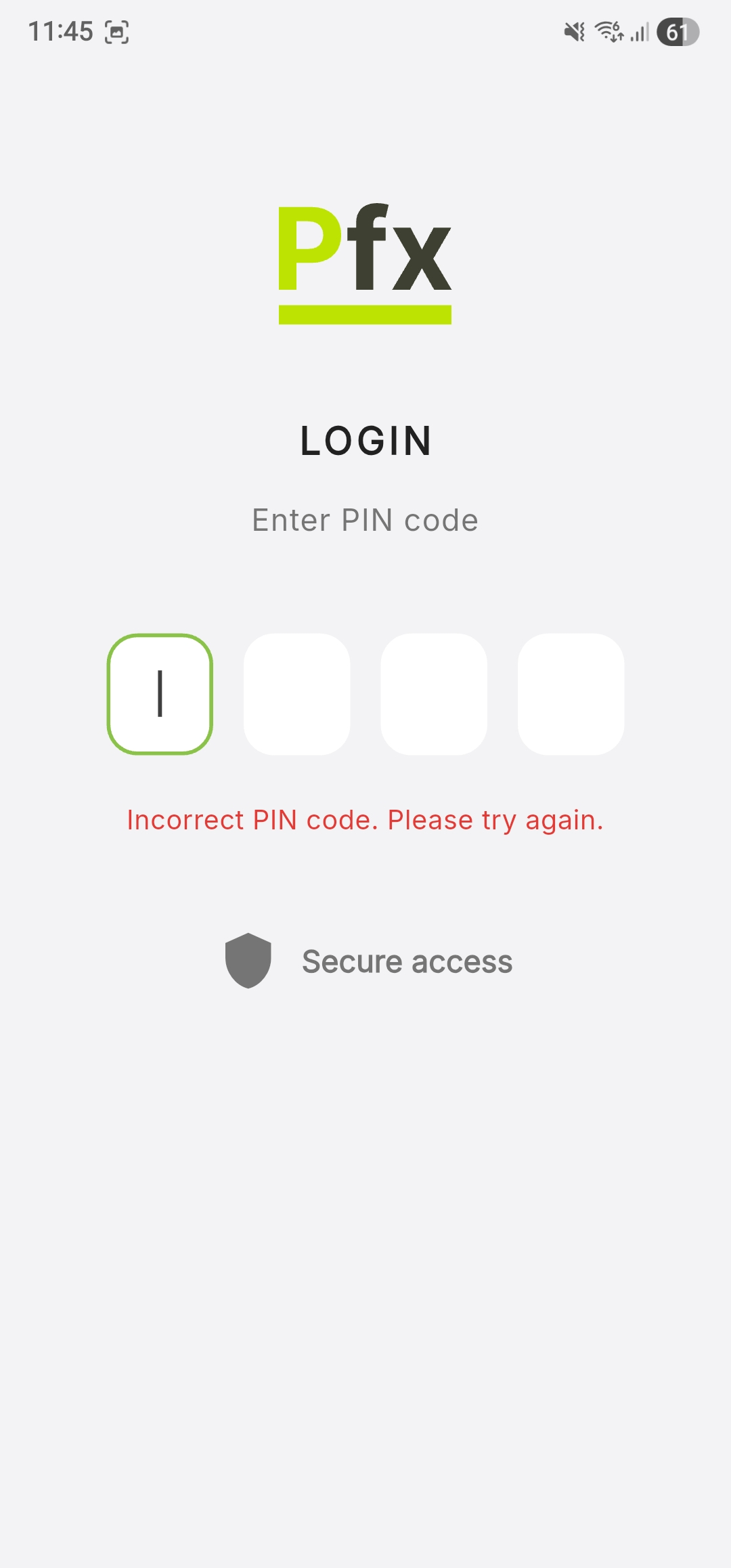The system logs you in automatically after the last digit is entered, without requiring additional confirmation. - If the PIN is incorrect, an error message appears, and you can re-enter it correctly