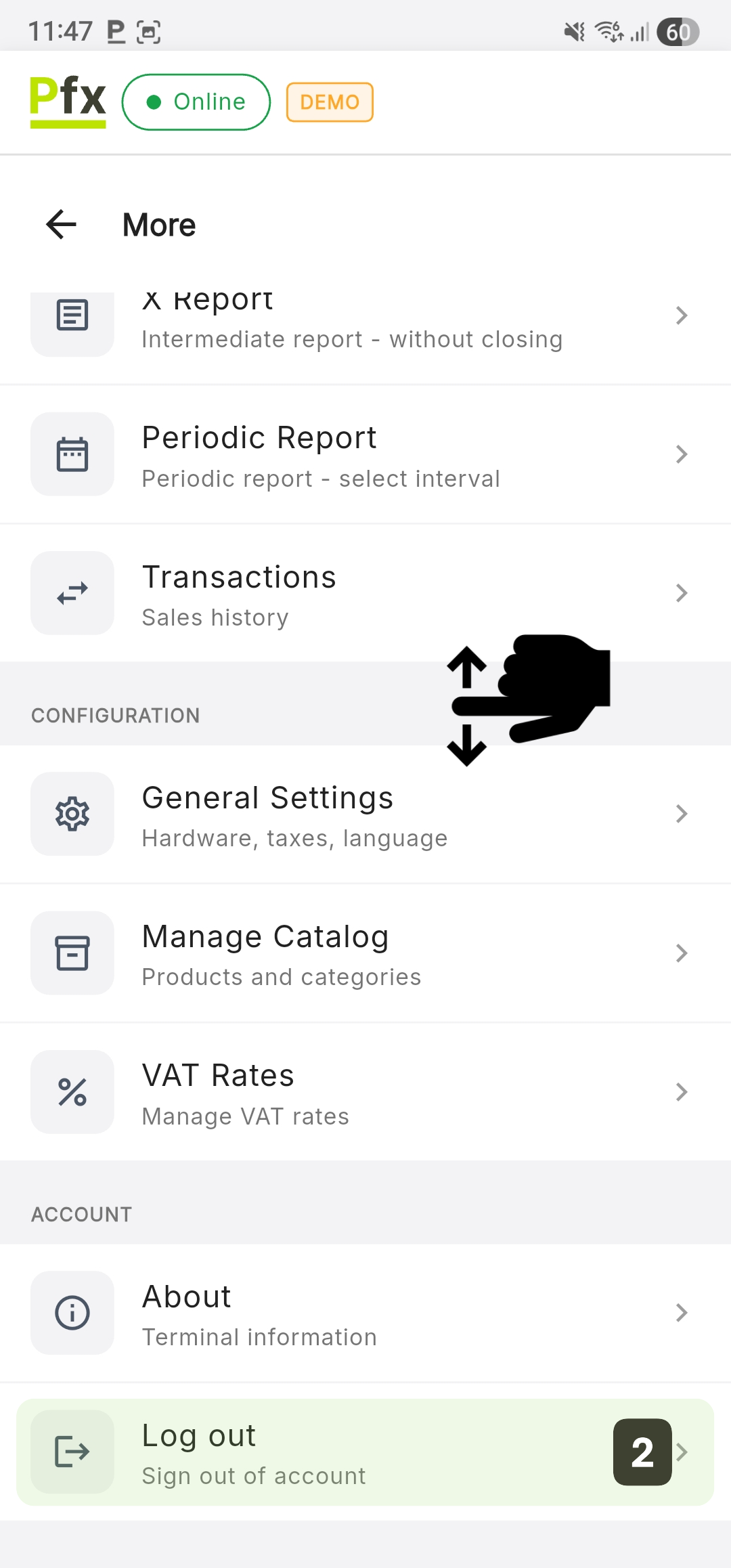 - Swipe down to the ACCOUNT section and press the Logout button