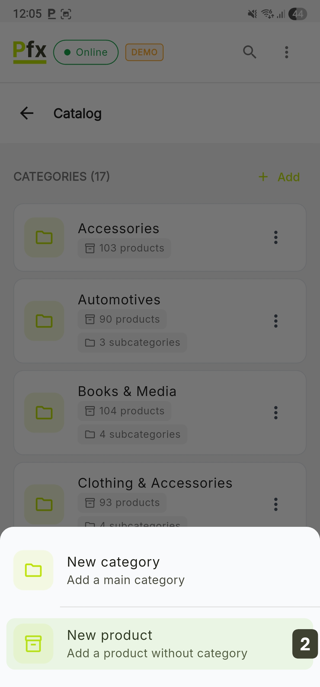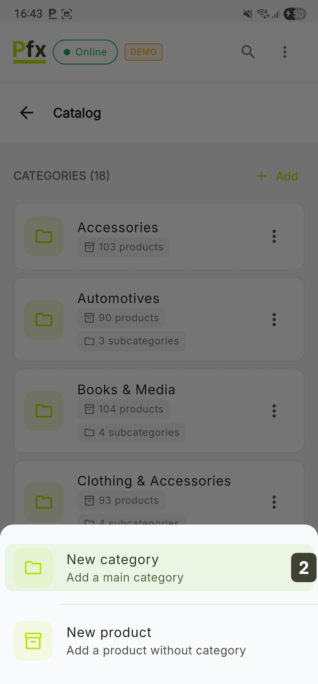 Under each category, the system will automatically display the number of products and subcategories it contains.