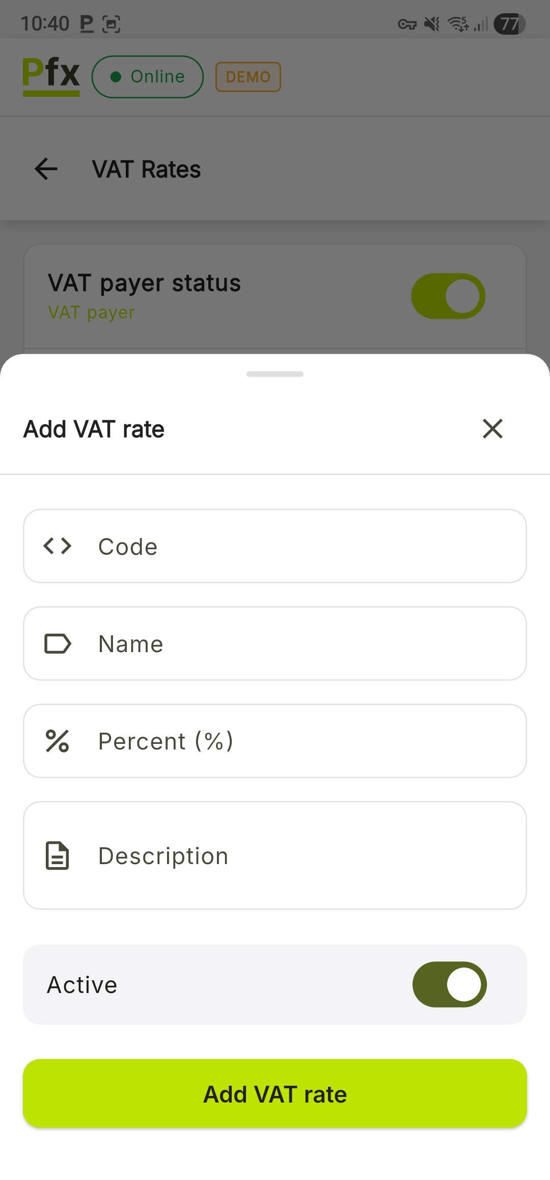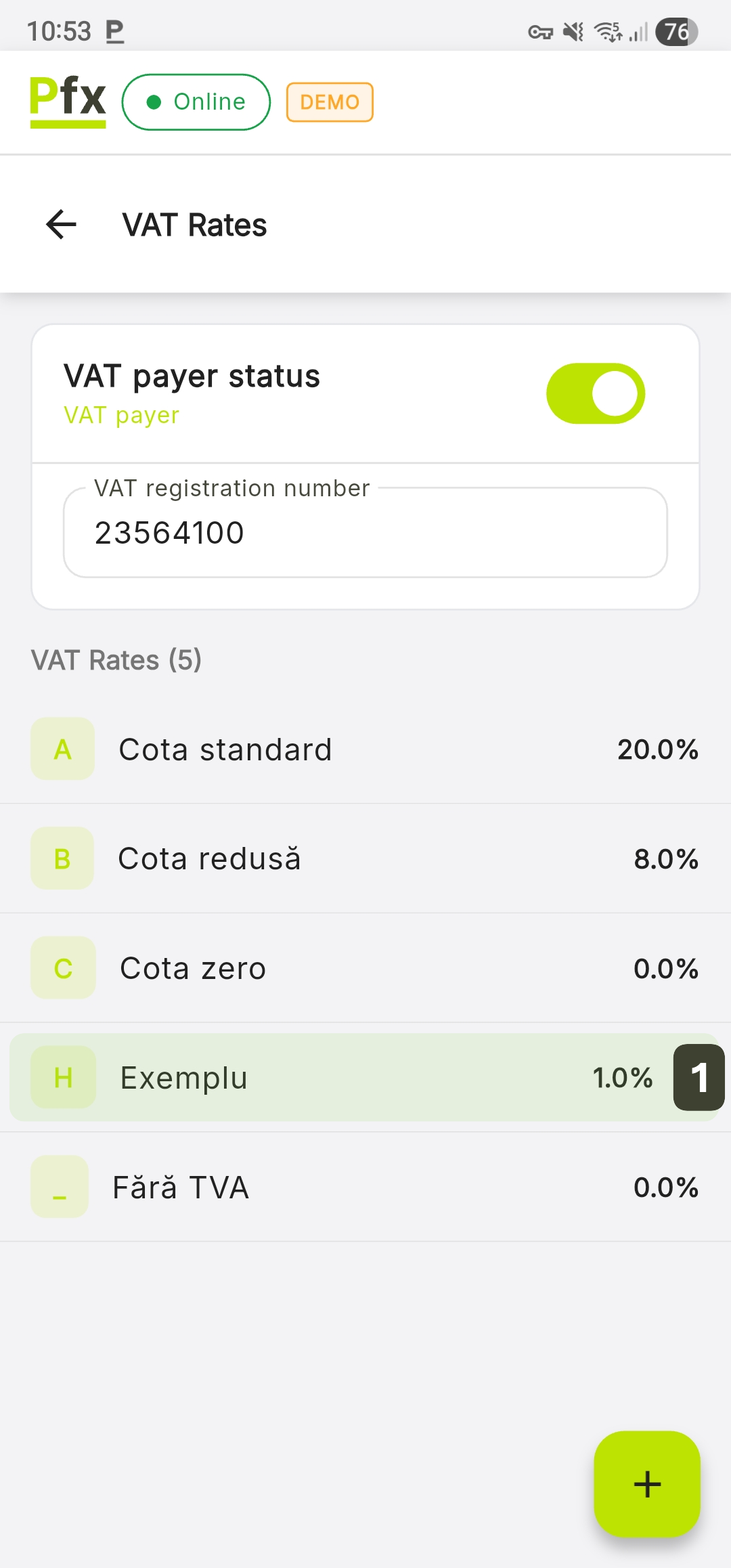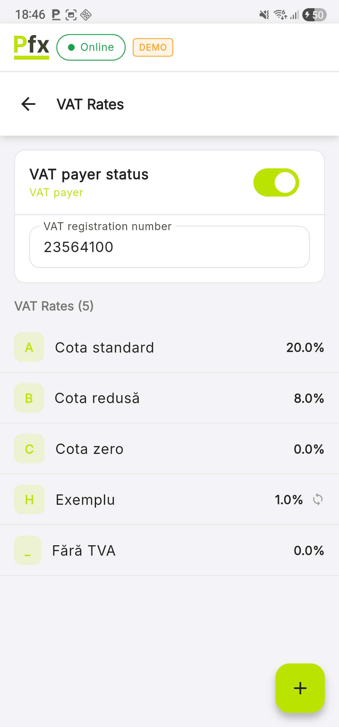 - Press Add VAT Rate to save the changes