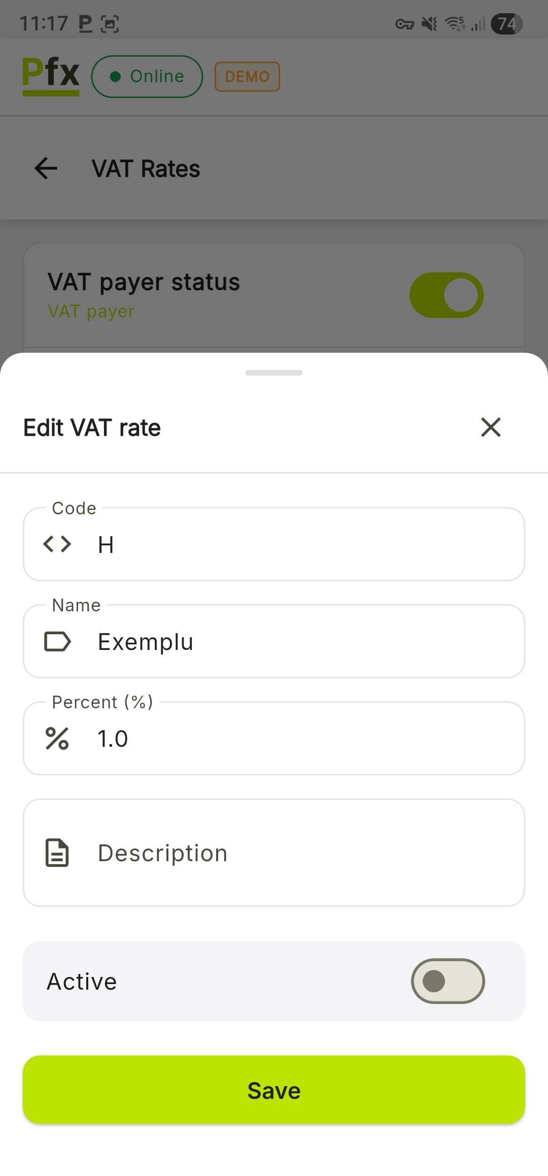 If a VAT rate is no longer valid according to the law, it is recommended to set its status to Inactive.