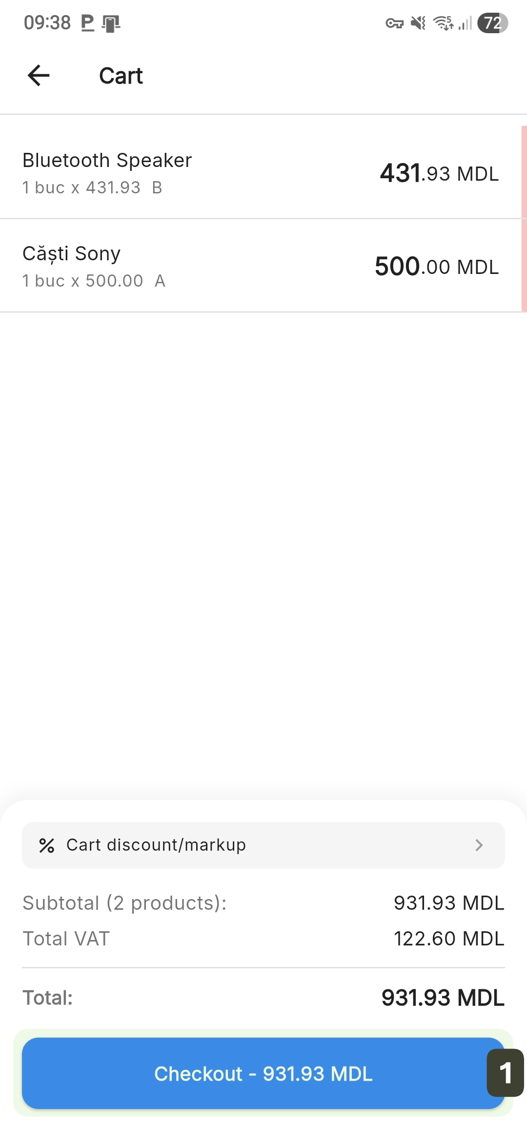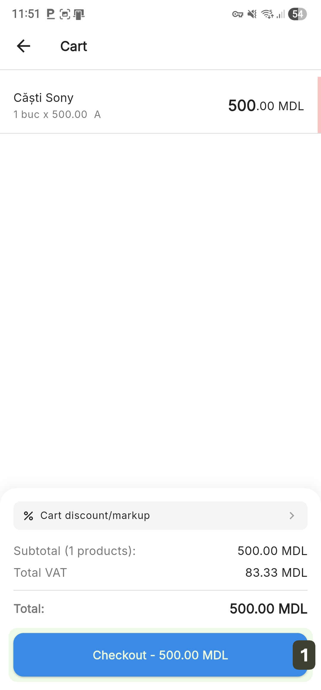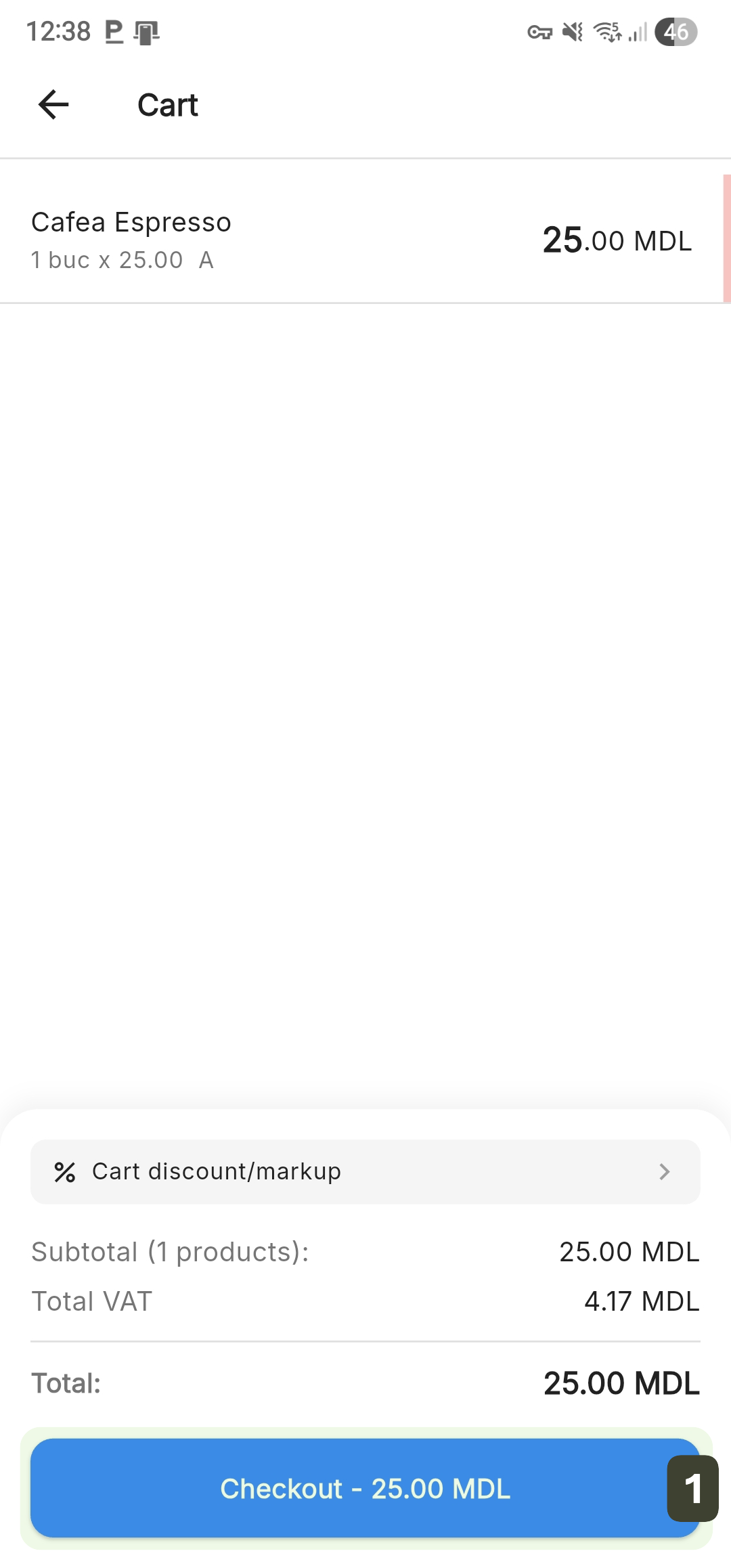 - From the cart screen, press the Checkout button