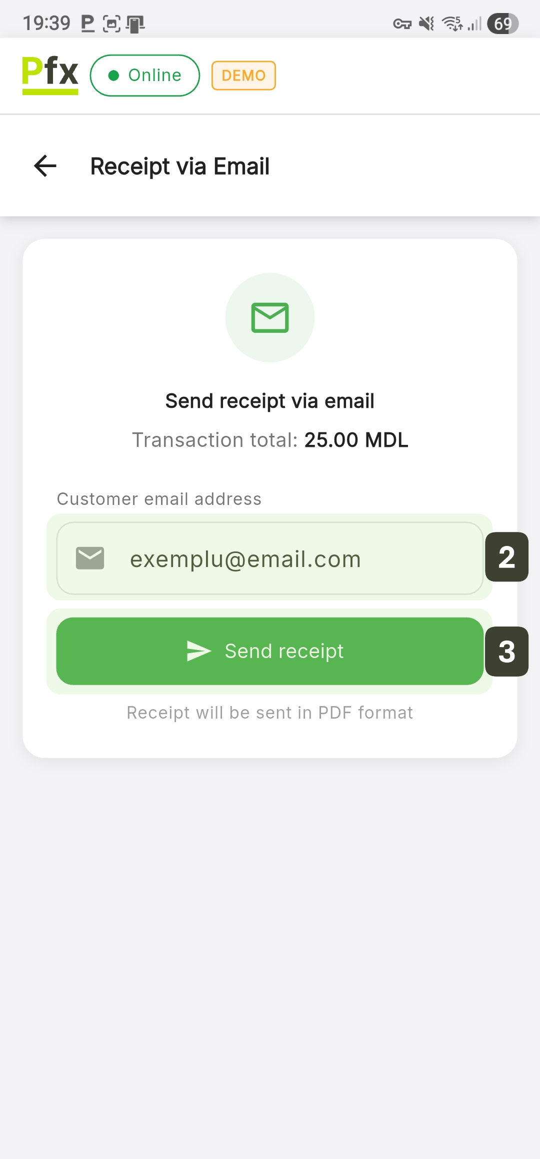 The fiscal receipt will be automatically sent as a PDF file, which can be viewed or downloaded from any device.
