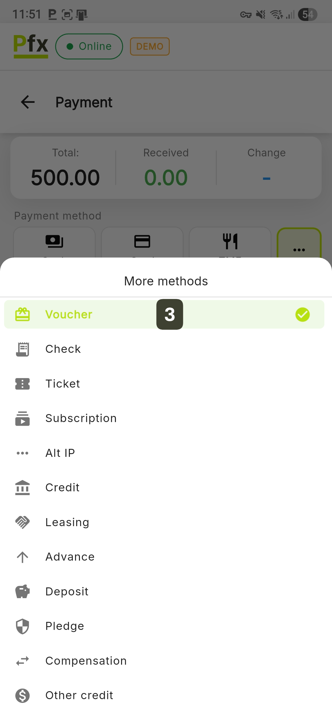 - From the More methods menu, select the Voucher option