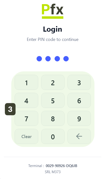 - On the login screen, enter the 4-digit PIN code associated with the Manager account using the numeric keypad.
