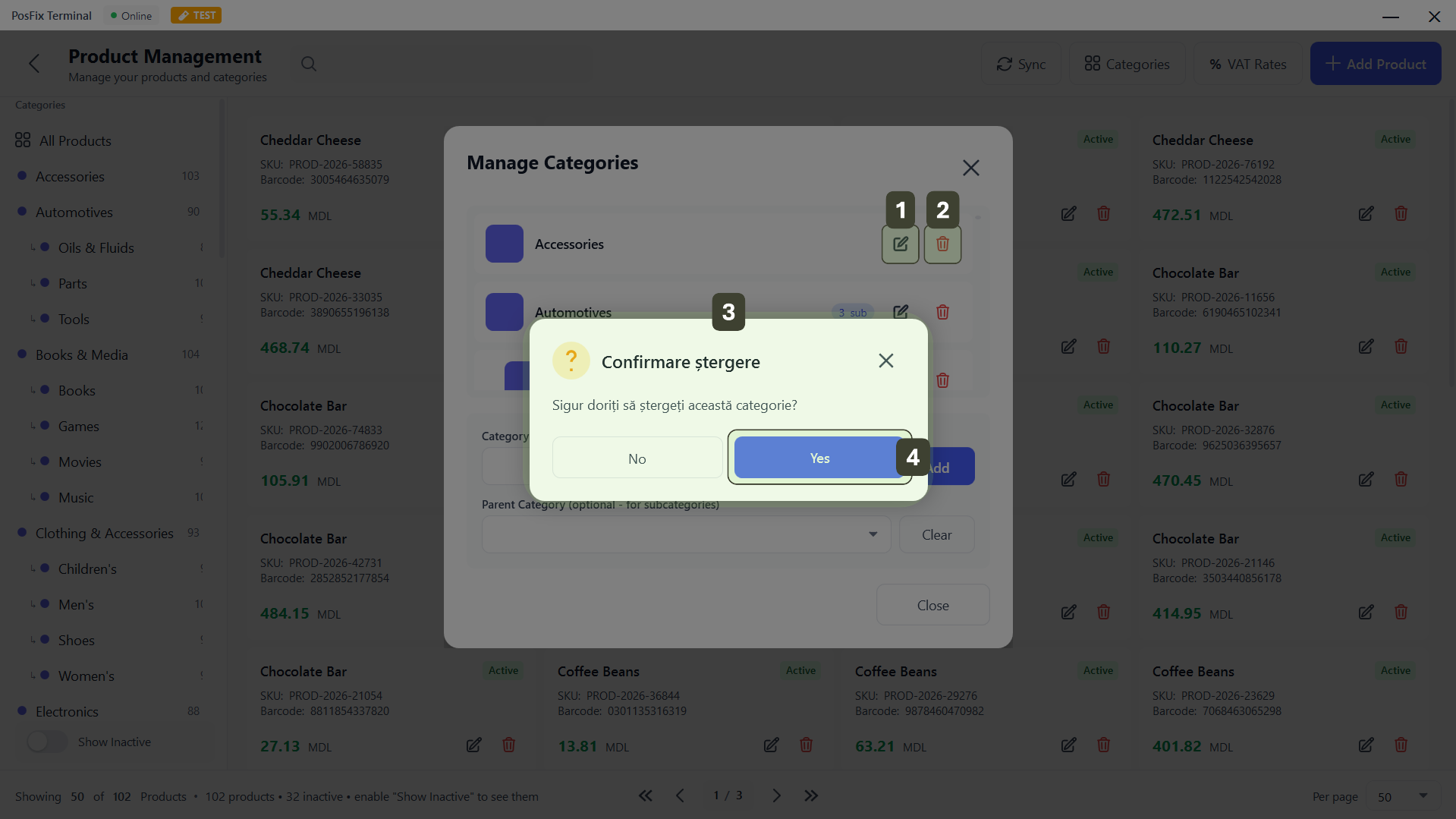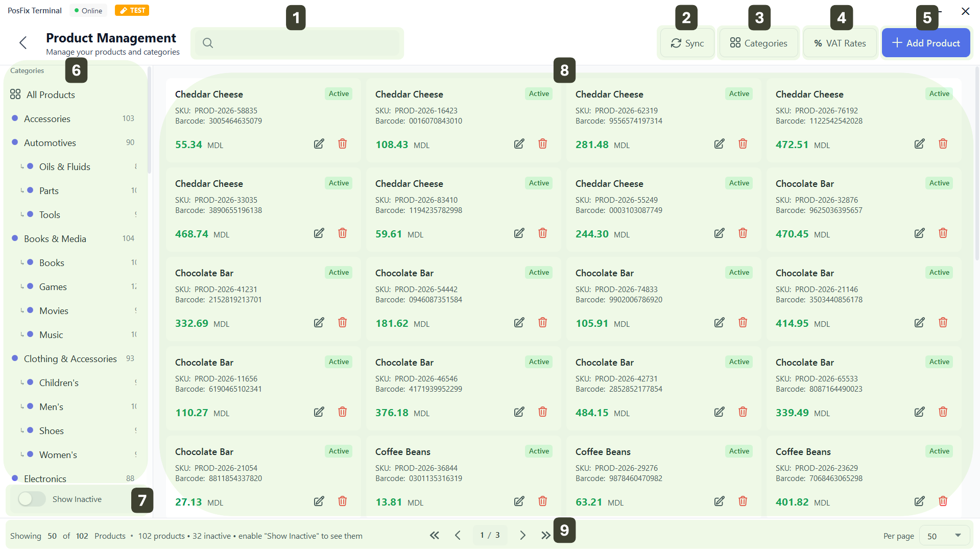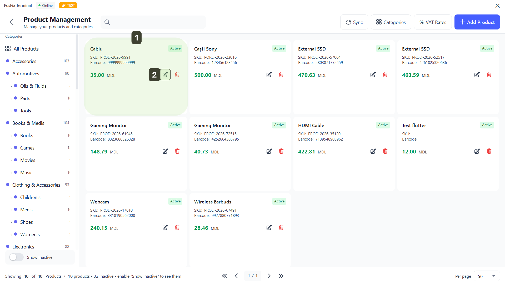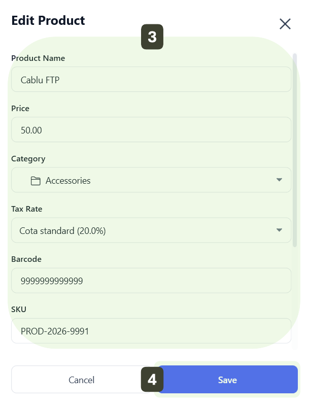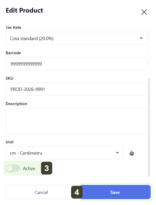 | Status | Active/Inactive | Enable or disable product availability in the cashier's list |