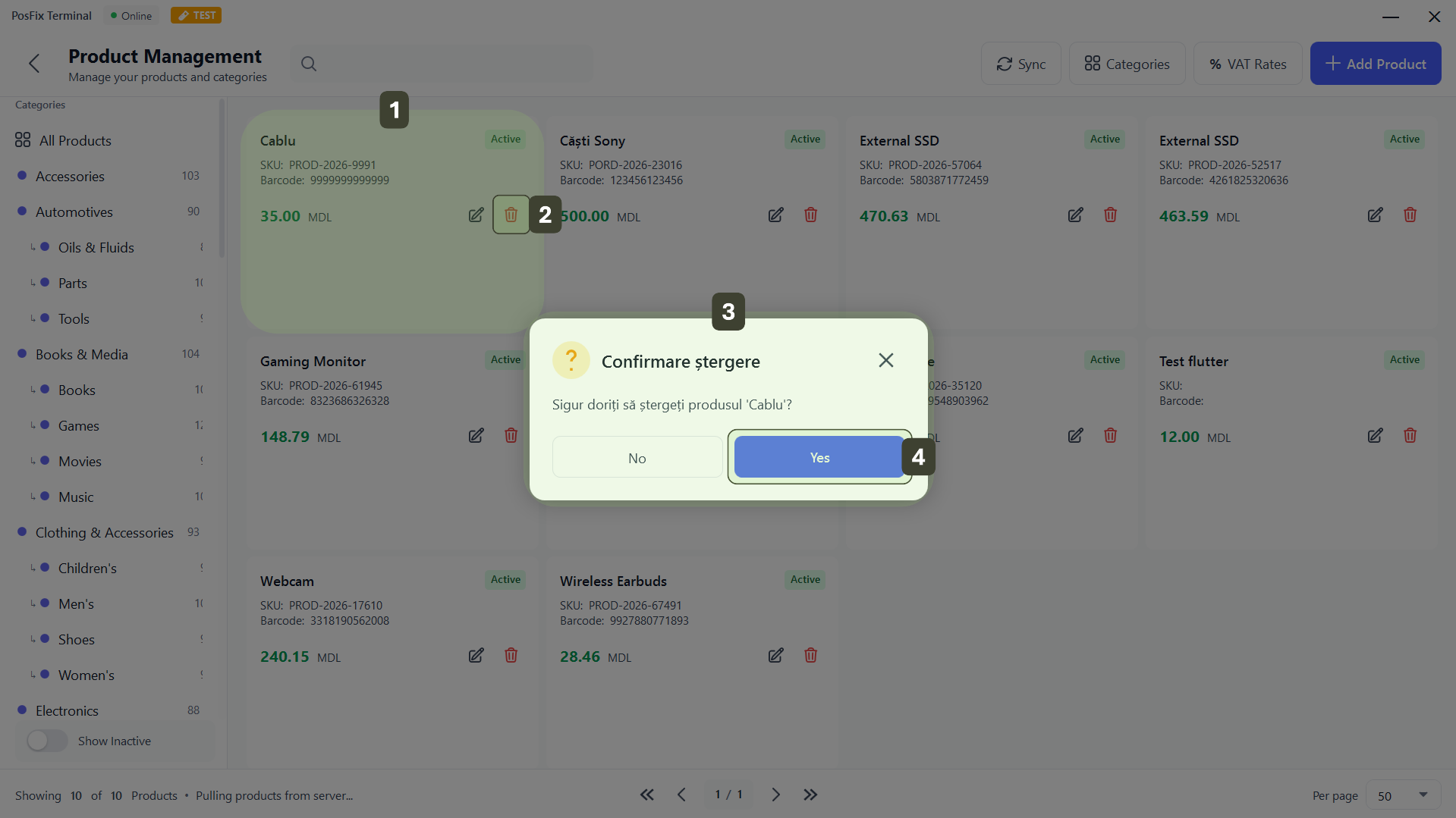 Locally Irreversible Action: Once confirmed, the deletion removes the product from the application interface.