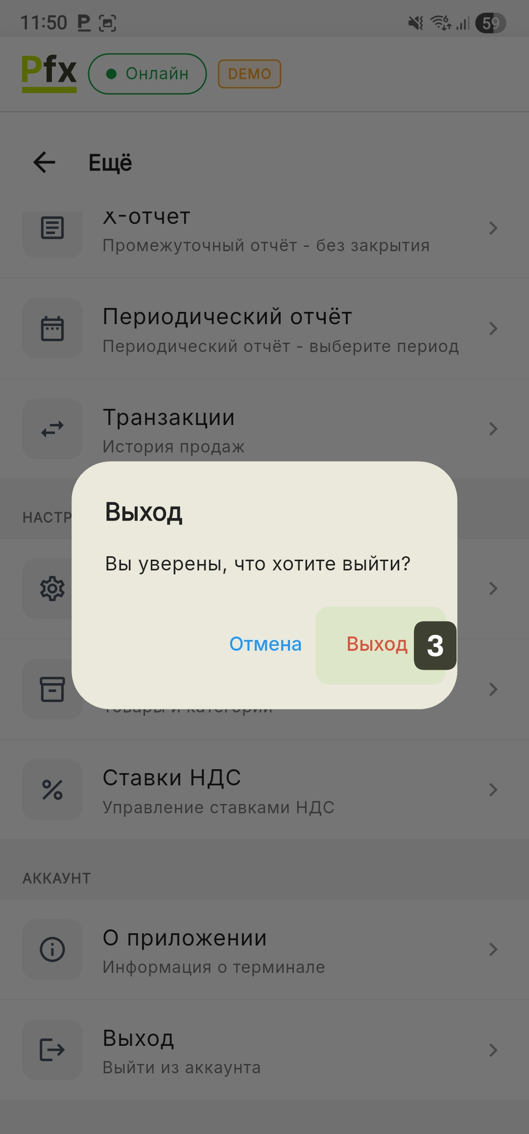 - Подтвердите действие, нажав Выход ещё раз во всплывающем окне