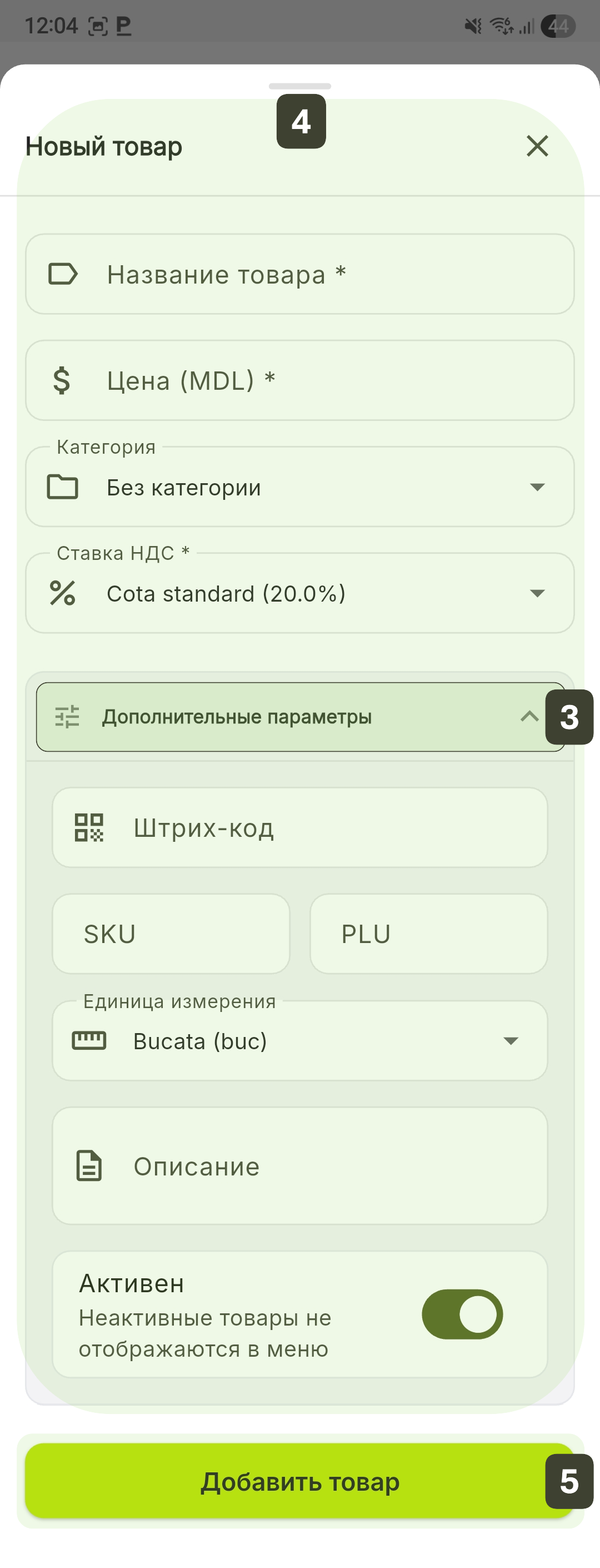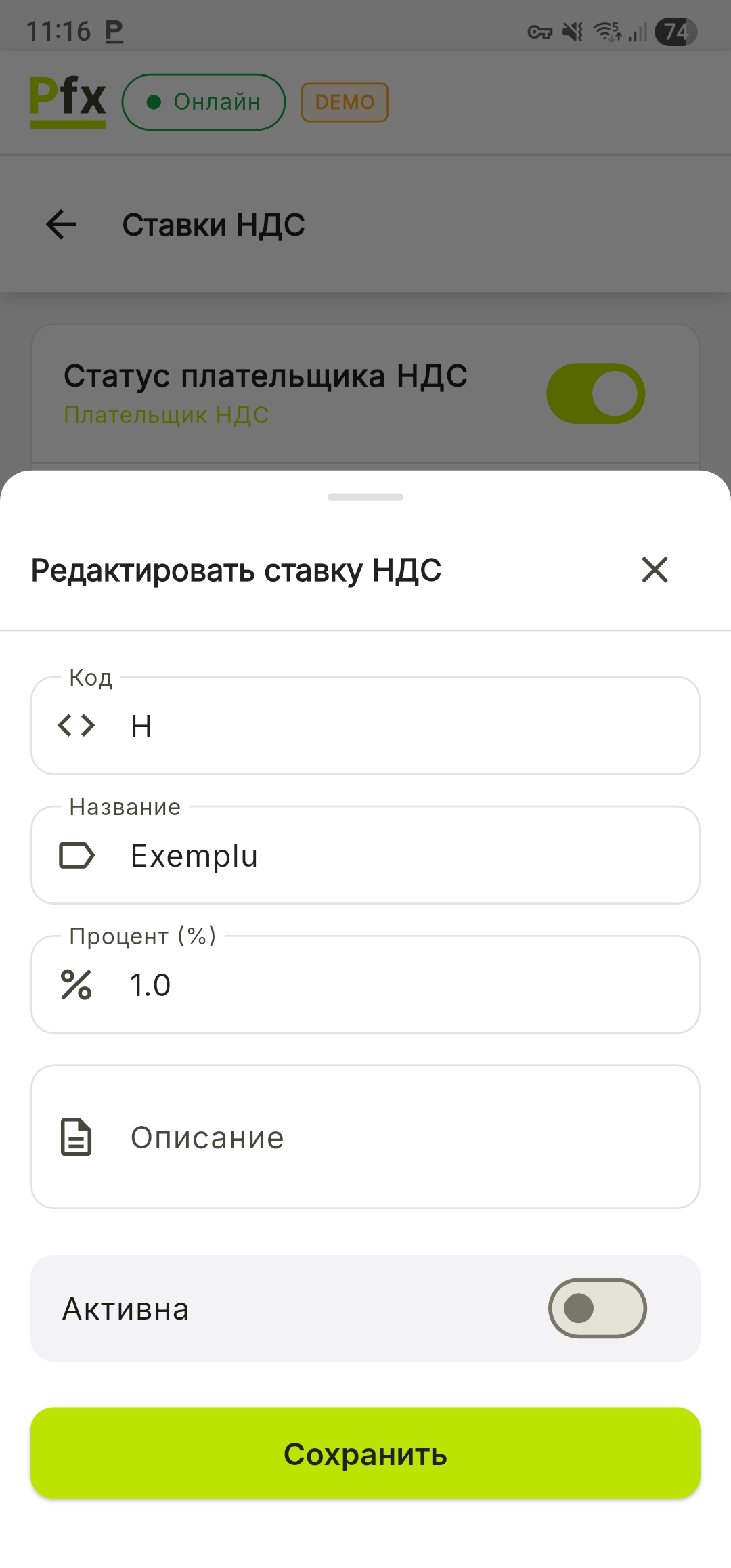 | Ставка НДС | Обязательное | Выберите фискальную ставку: A (20%), B (8%), C (0%) |