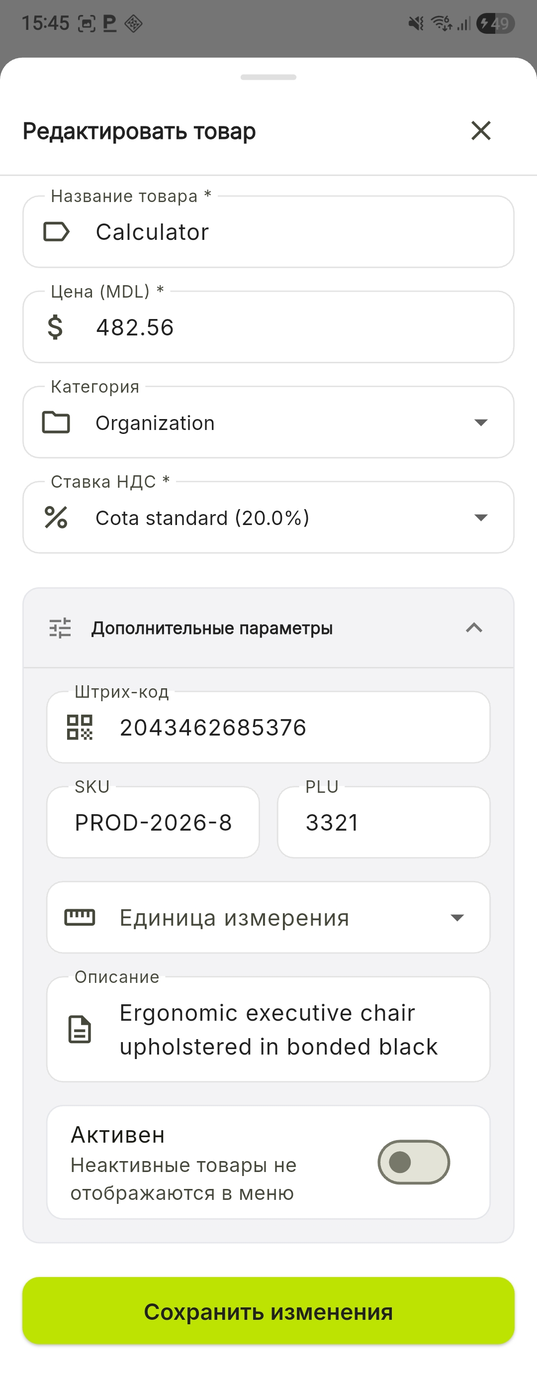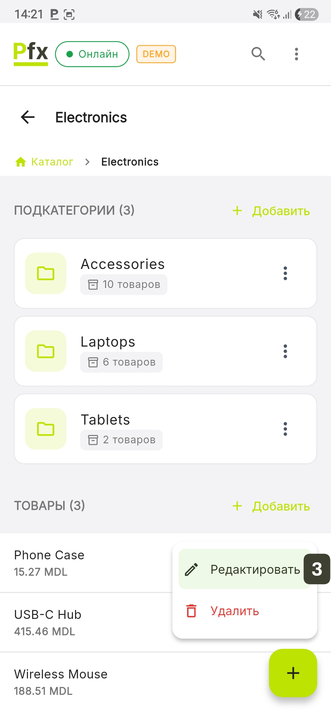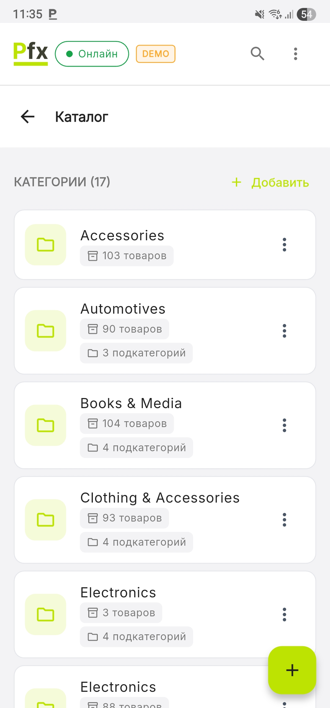 Модуль Управление каталогом является центром контроля вашего инвентаря, позволяя управлять номенклатурой товаров, иерархией категорий и привязкой ставок НДС непосредственно с терминала Android.