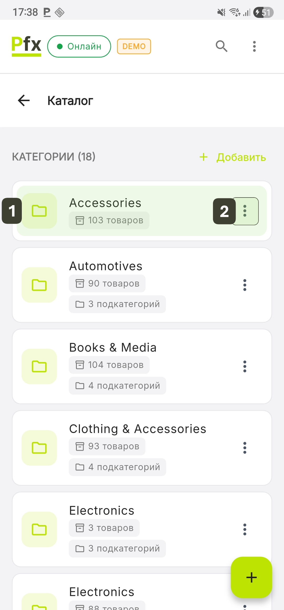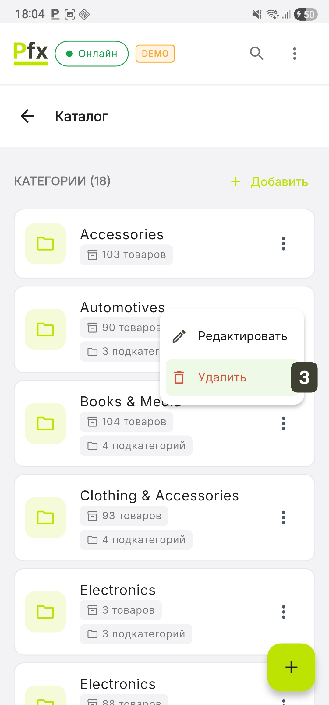 - Нажмите на иконку [ ⋮ ] напротив категории