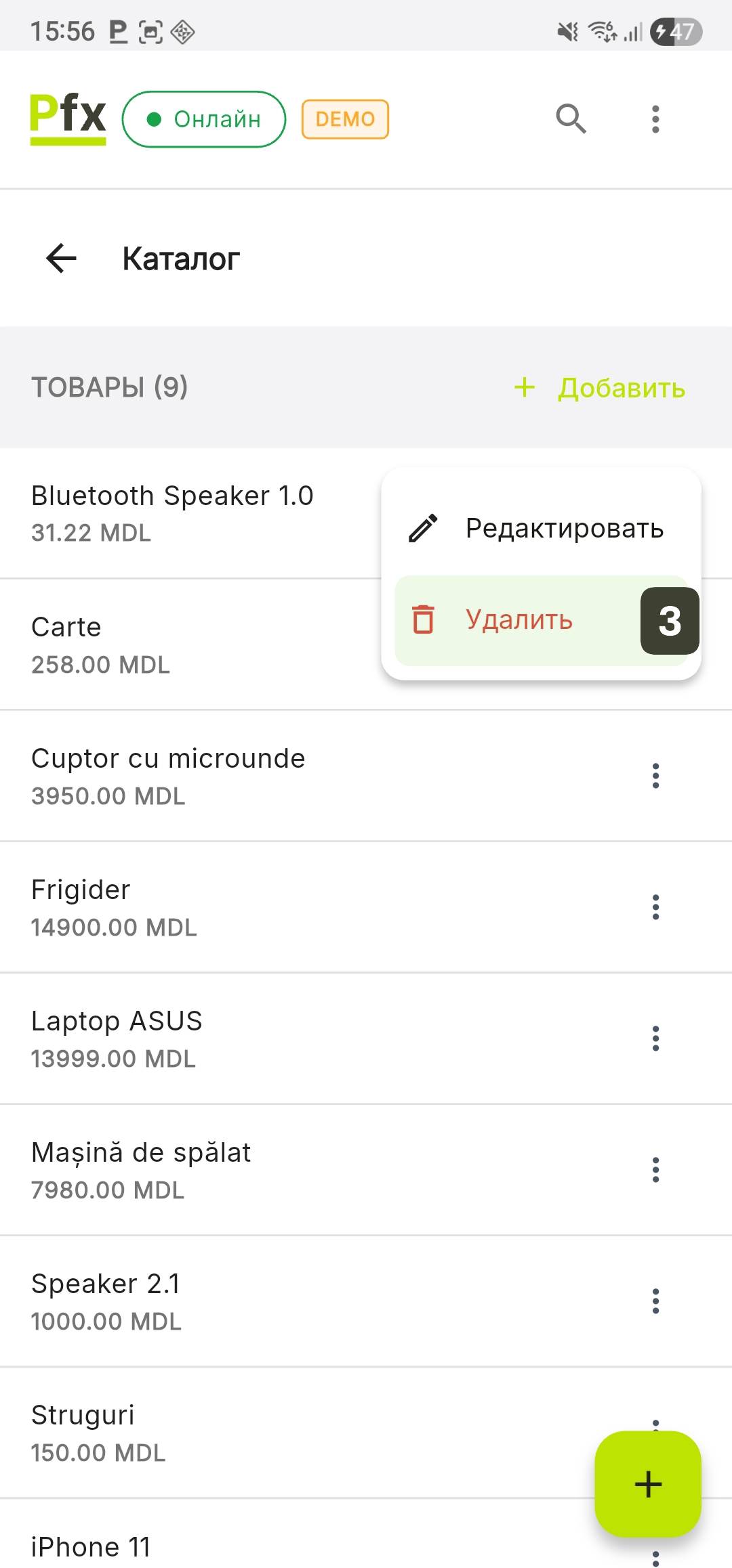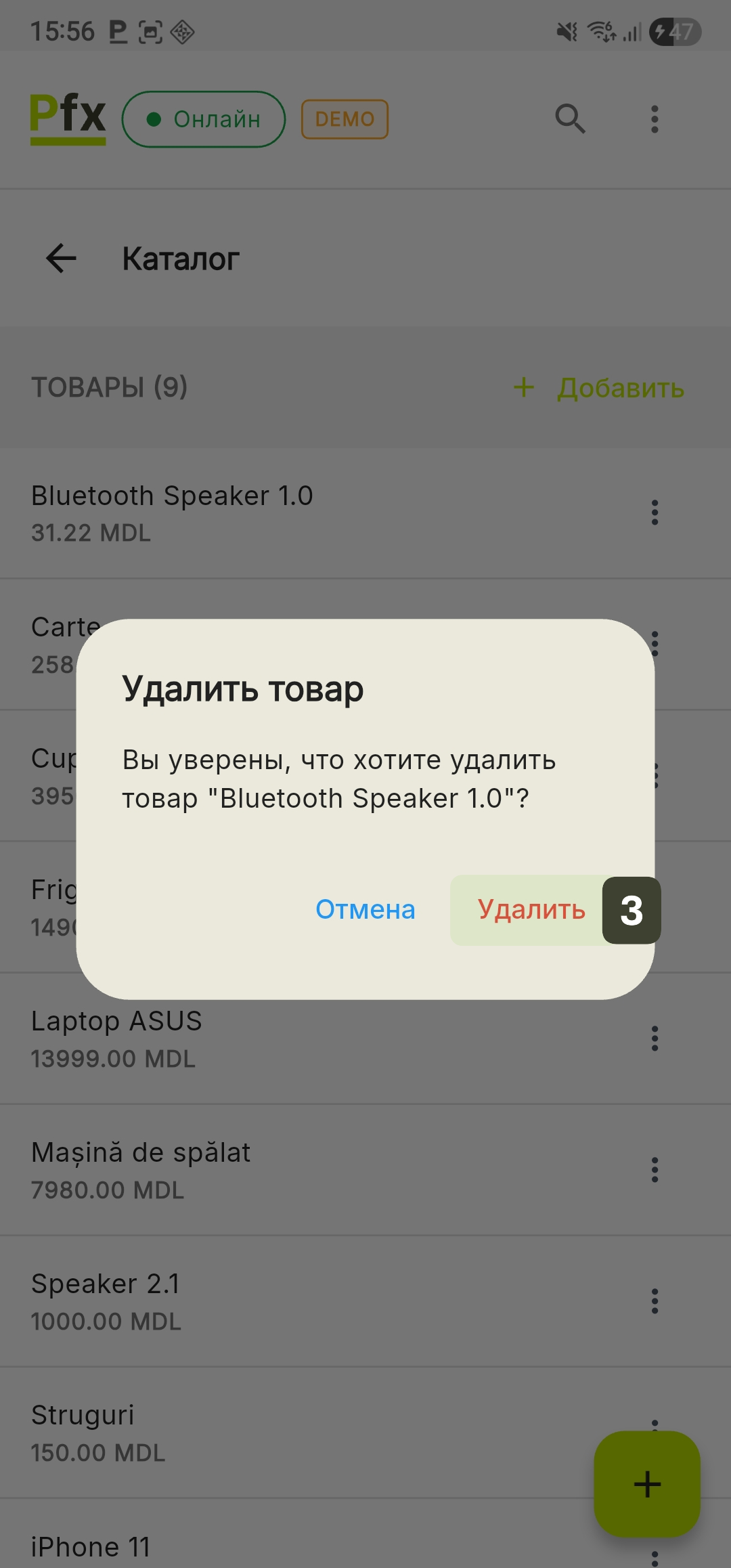 Необратимое действие на локальном уровне: После подтверждения удаление убирает товар из интерфейса терминала.