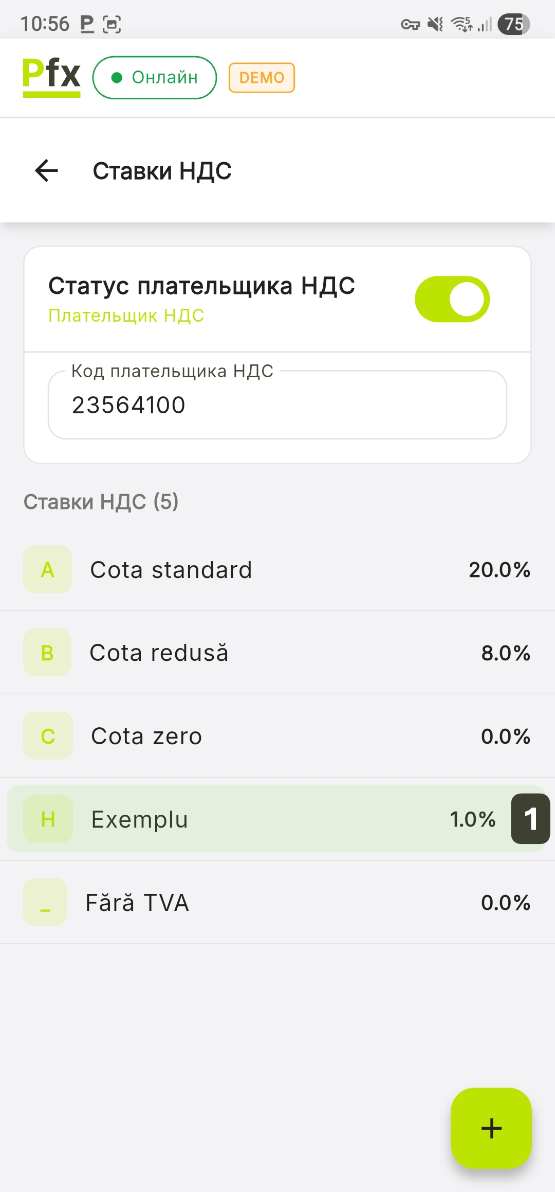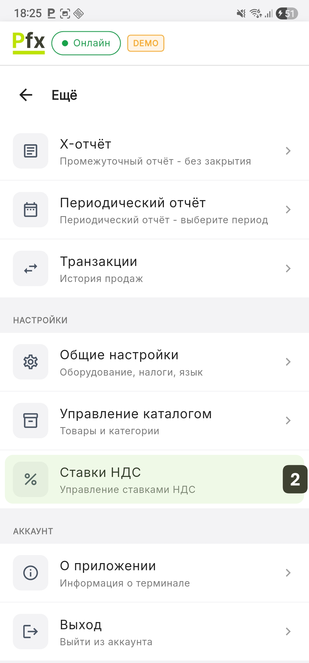 Для просмотра или изменения ставок НДС, настроенных в приложении PosFix, выполните следующие шаги: