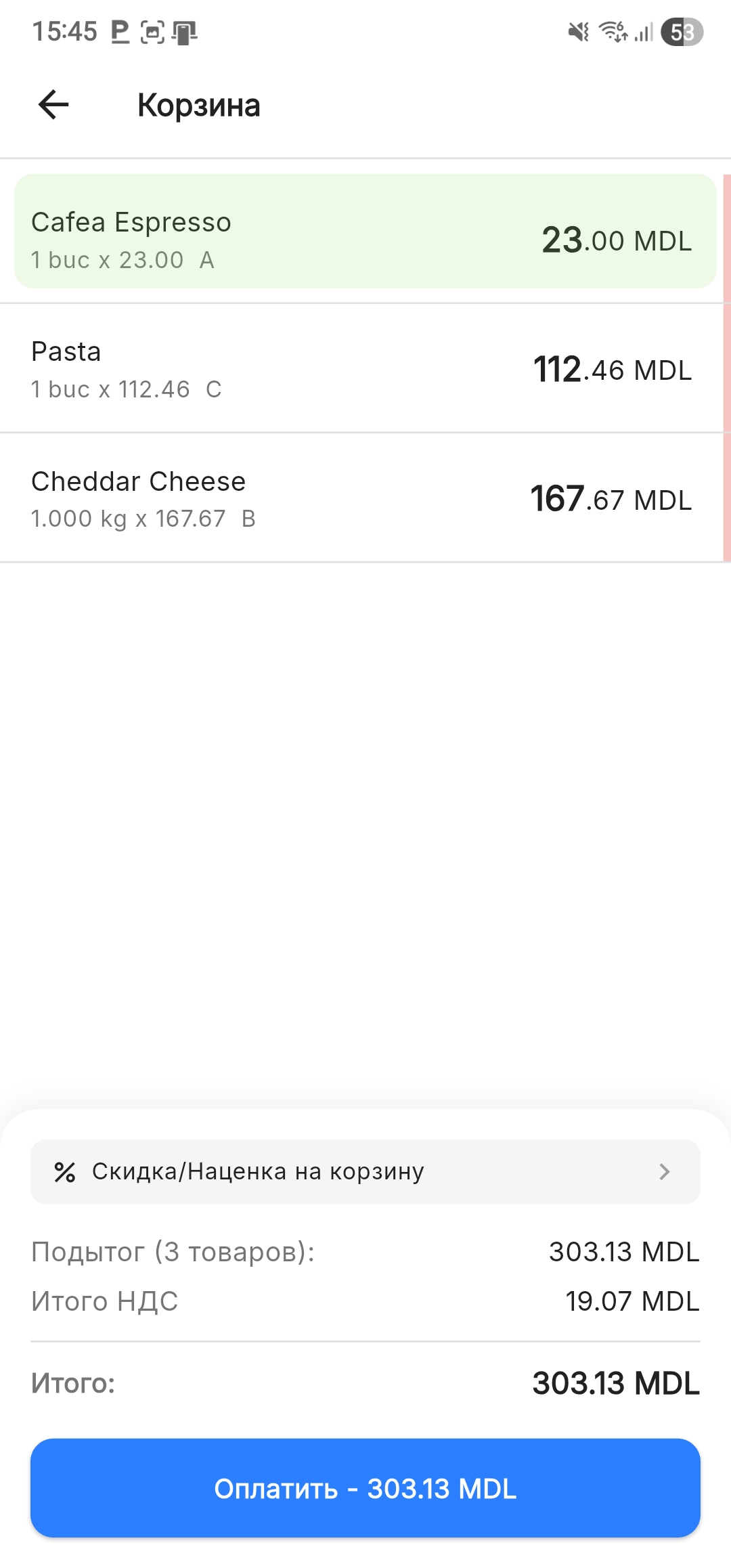 | Ошибочная скидка/наценка | Нажмите на товар и используйте кнопку [X] чтобы убрать корректировку |