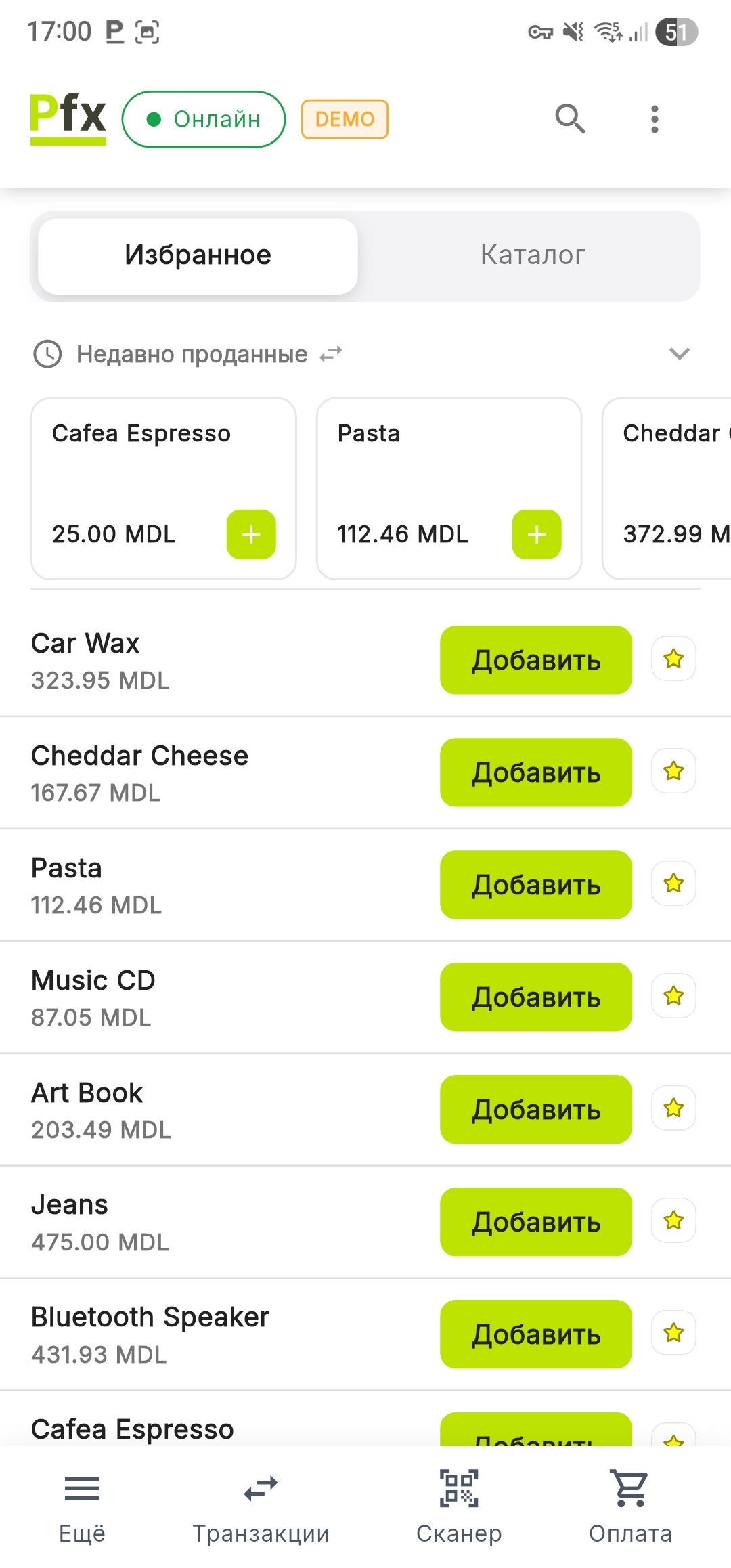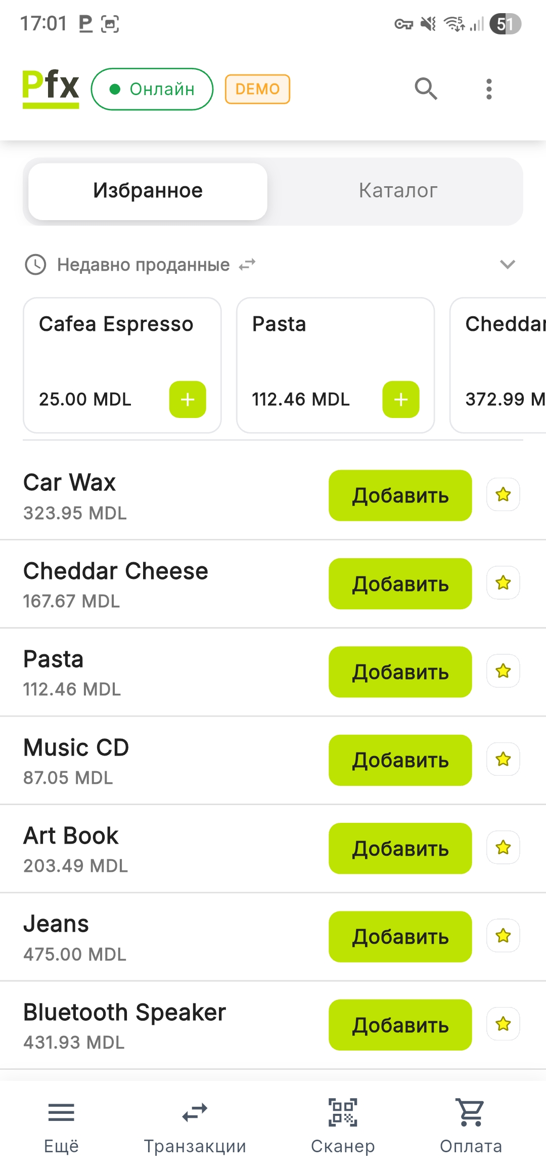 Система PosFix позволяет быстро добавлять товары путём сканирования штрих-кодов с помощью встроенного оборудования терминала или внешних периферийных устройств.