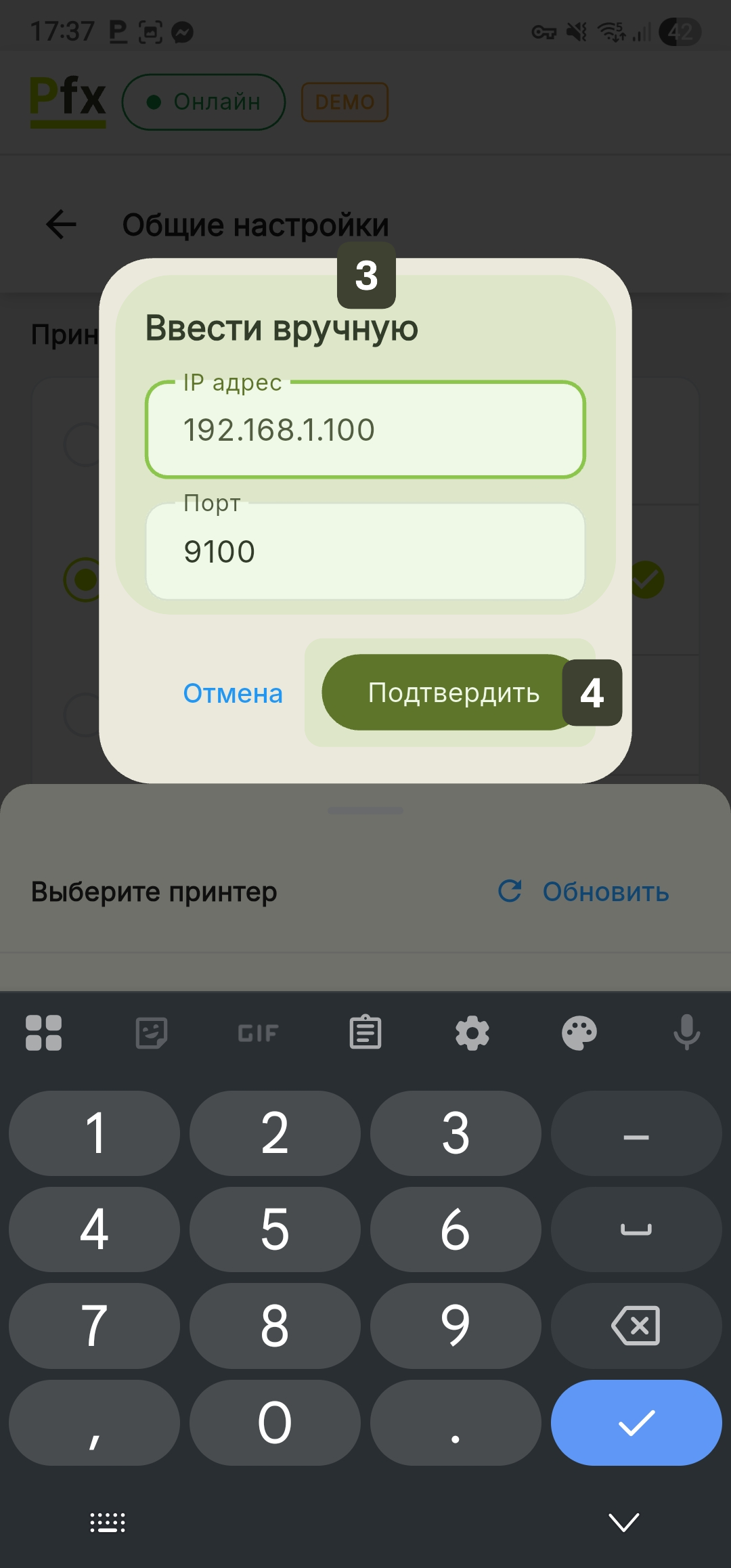 Для термопринтеров, подключённых через Wi-Fi или LAN: