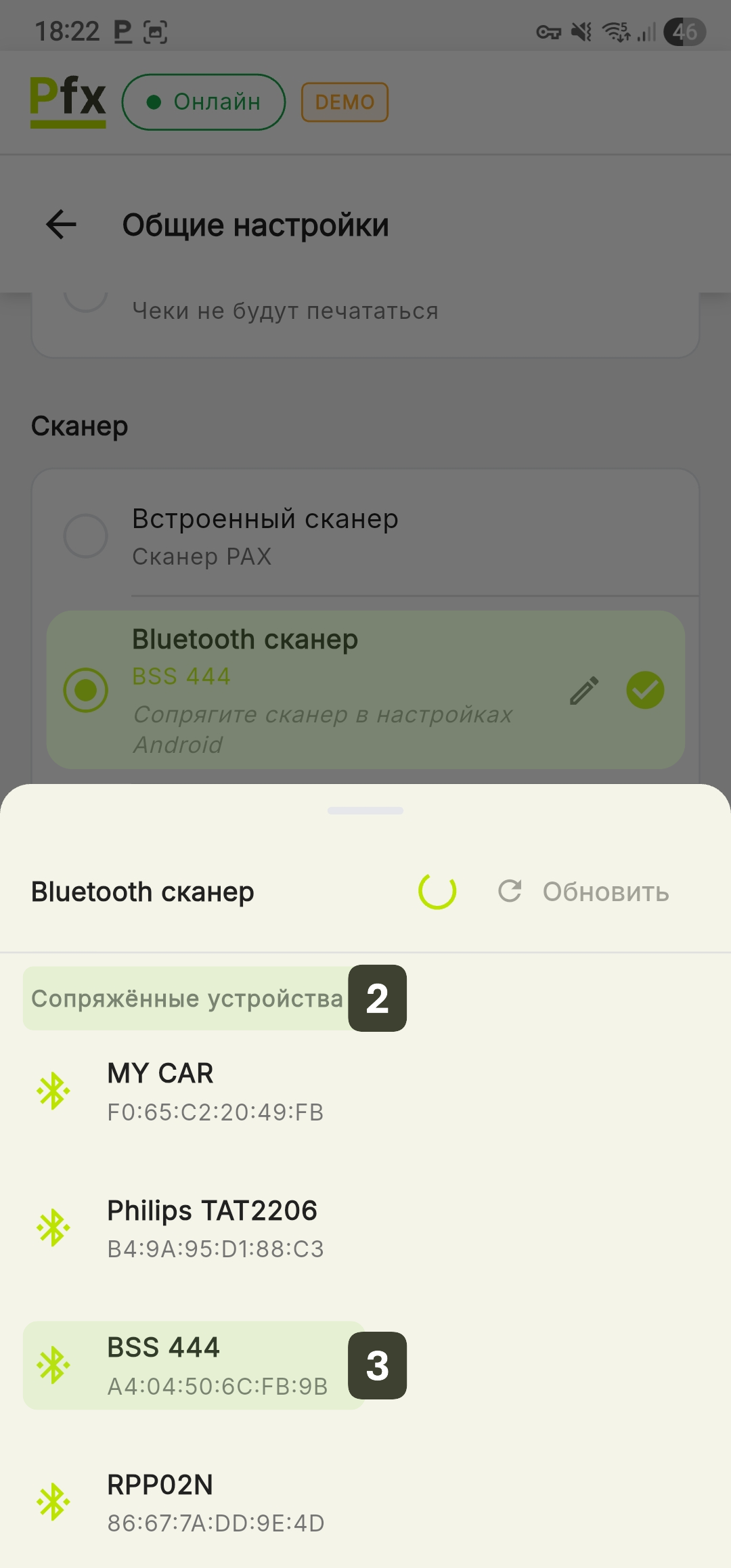После выбора его название появится под заголовком «Bluetooth сканер».
